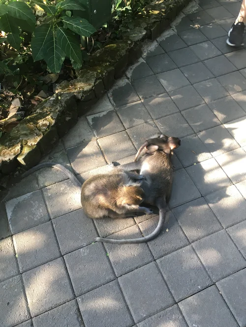 Of course the monkey forest is must-do, even if Suki gave us the head’s up that this forest was overrun by tourists and that the monkeys were desensitized due to the never-ending flow of humans combing the grounds. He also informed us there was a very nice monkey forest in Lombok we should go to which is less mobbed- we made a mental note of that. Nevertheless, none of this information deterred us from going to the forest in Ubud. There were definitely a lot of tourists around, and the monkeys do not give a shit about them. They are in their own world and not concerned with human presence. But, still it’s not everyday you get to walk around and a monkey is literally inches away from you. One highlight was watching an employee feed a monkey with enormous testicles. I mean he couldn’t sit down on his rear end because his eggs were that large. Quite breathtaking, really. There is a directive from the park that you shouldn’t make direct eye contact with the monkeys because that could be interpreted as a threat and they may attack. At least in our experience, that’s bullshit. Maybe if you are Ted Bundy and make eye contact with a monkey, they will pick up on that bad energy. But really they don’t care. We saw some monkeys jump on people’s shoulders, and we desperately wanted that.