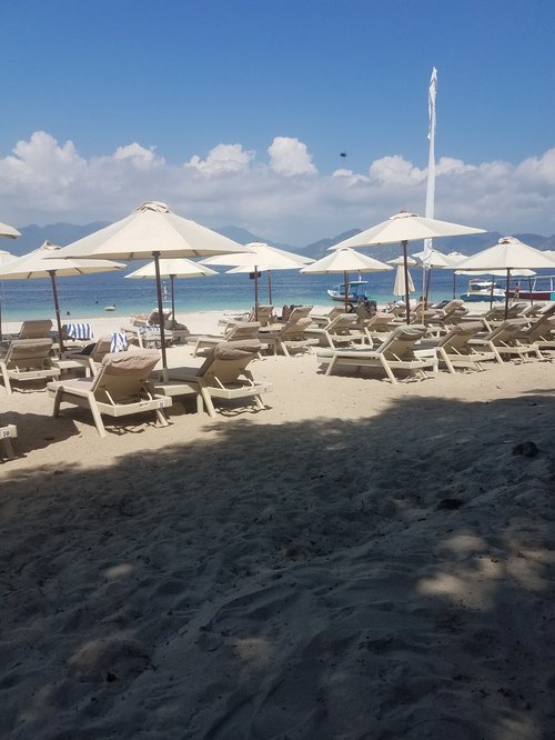 We took taxis to the Senggigi port and got there early. Hanging out on the dock was good and bad- the water was so transparent we could see a sea turtle swimming pretty deep down. The sea breeze was lovely, however, due to being surrounded by many Europeans and Asians, was inundated with cigarette smoke. Plus there was this one beer can that was rolling around that no one was willing to pick up. Based on this, I felt the need to step away…but also really had to take a whiz. After putting in 5% effort to find a bathroom, I ended up going in a relatively public area of the beach. It would not have been ideal to have been seen by the Indonesian conservative authorities with my Ding Dong Johnson out.